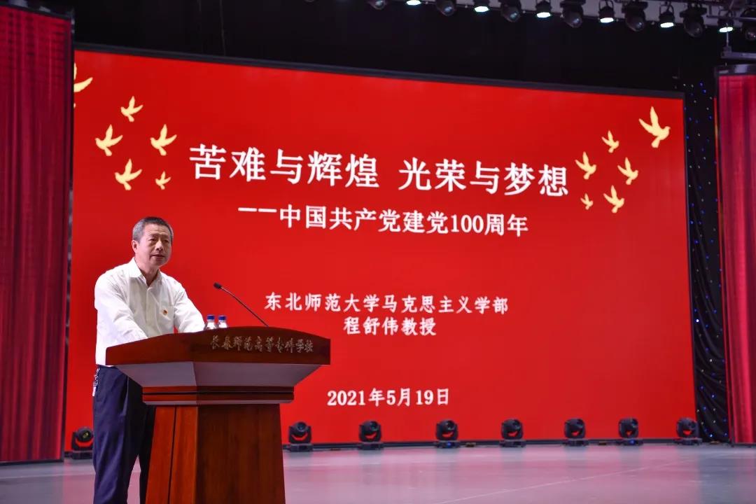 为进一步教育引导全校师生深刻把握党史学习教育的重大意义,学懂弄通做实党的创新理论,不断提高政治判断力、政治领悟力、政治执行力,切实增强开展党史学习教育的思想自觉、政治自觉和行动自觉,5月19日,我校召开党史学习教育专题辅导报告会暨理论学习中心组学习(扩大)会,邀请东北师范大学马克思主义学部教授、博士生导师程舒伟作“苦难与辉煌 光荣与梦想”专题辅导报告。