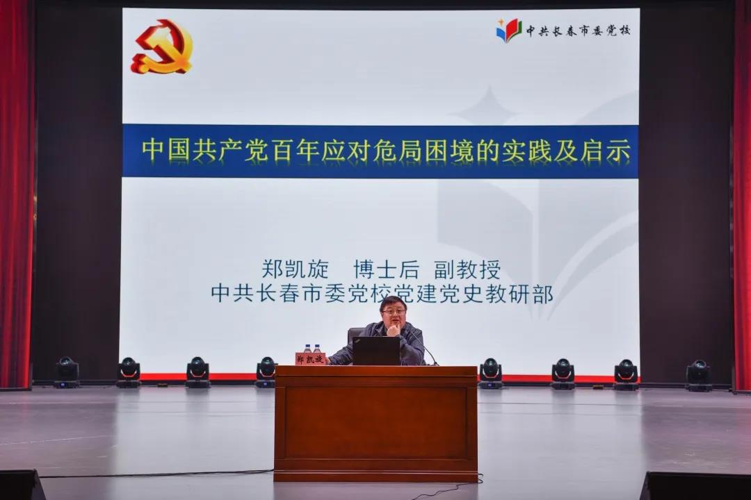 为深入学习贯彻党的十九届五中全会精神,扎实推进党史学习教育。6月2日下午,在我校学校艺术中心举行庆祝建党100周年“送教下基层”专项活动暨“党史专家进校园”专题讲座,邀请中共长春市委党校党建党史教研部副教授、中共党史专业博士、马克思基础理论博士后郑凯旋,做主题为《中国共产党百年应对危局困境的实践及启示》的讲座,讲座由我校党委委员、副校长史书华主持。