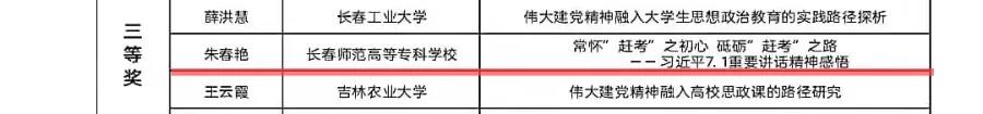 11月16日,中共吉林省委教育工作委员会公布了全省高校“请党放心,强国有我”系列活动评选结果,我校思政部胡艳华老师和朱春艳老师“优秀教案优秀课件”作品均获优秀奖,朱春艳老师的理论文章荣获三等奖。