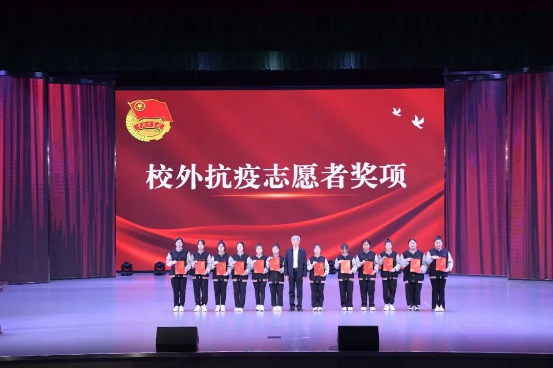 纪委书记张建村为获校外抗疫志愿者奖项优秀学生代表颁奖