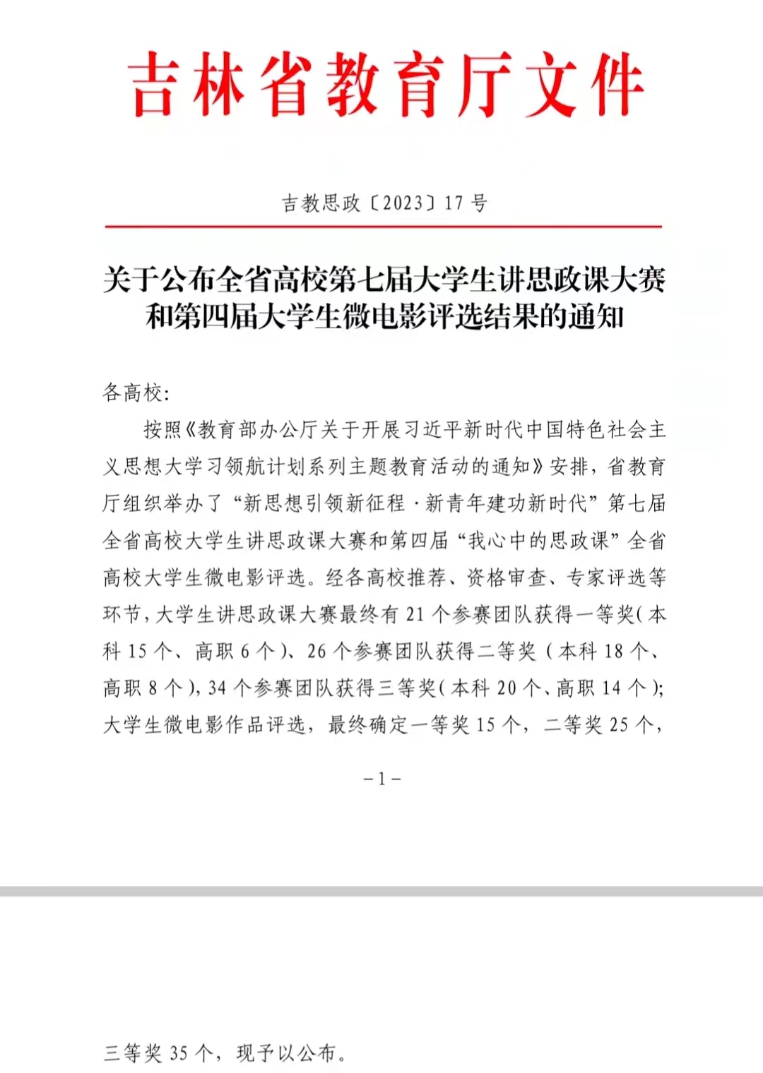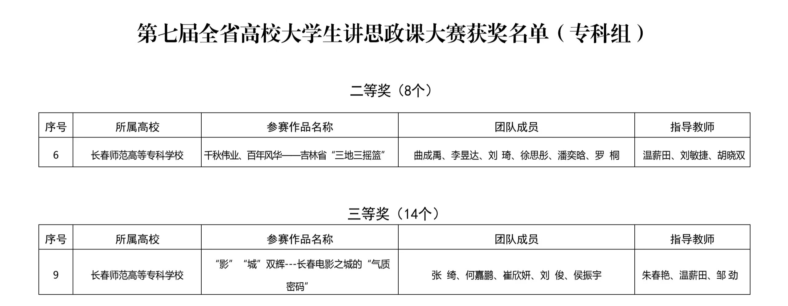 10月31日,吉林省教育厅公布了《第七届全省高校大学生讲思政课大赛获奖名单》和《第四届全省高校大学生微电影评选获奖作品名单》。我校推荐参赛的4个作品荣获两项二等奖、两项三等奖,在获奖级别、获奖数量上均取得历史性突破。