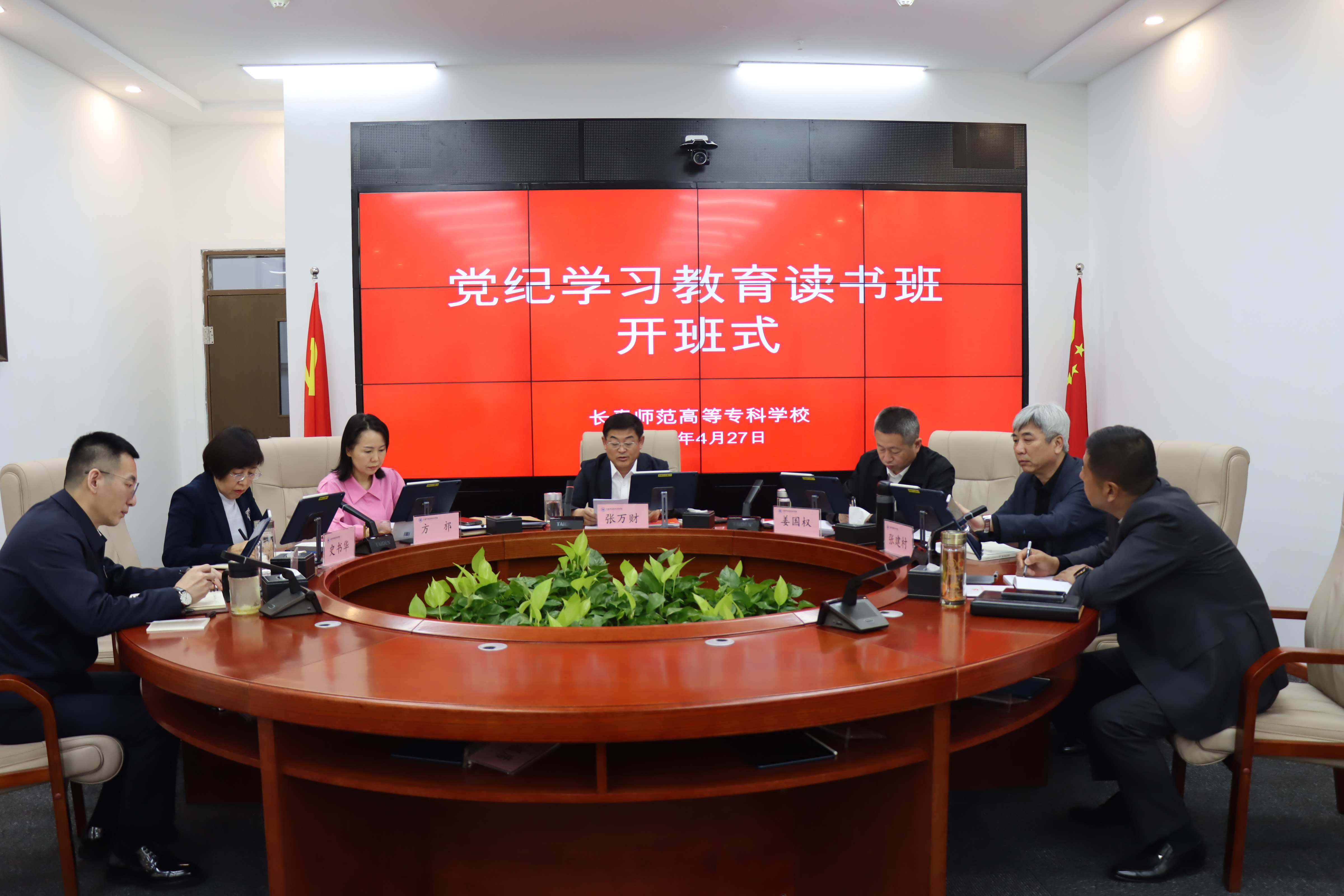 4月27日,学校举行党纪学习教育读书班开班式暨党委理论学习中心组专题学习会。开班式由党委书记张万财主持,学校领导班子成员参加会议。