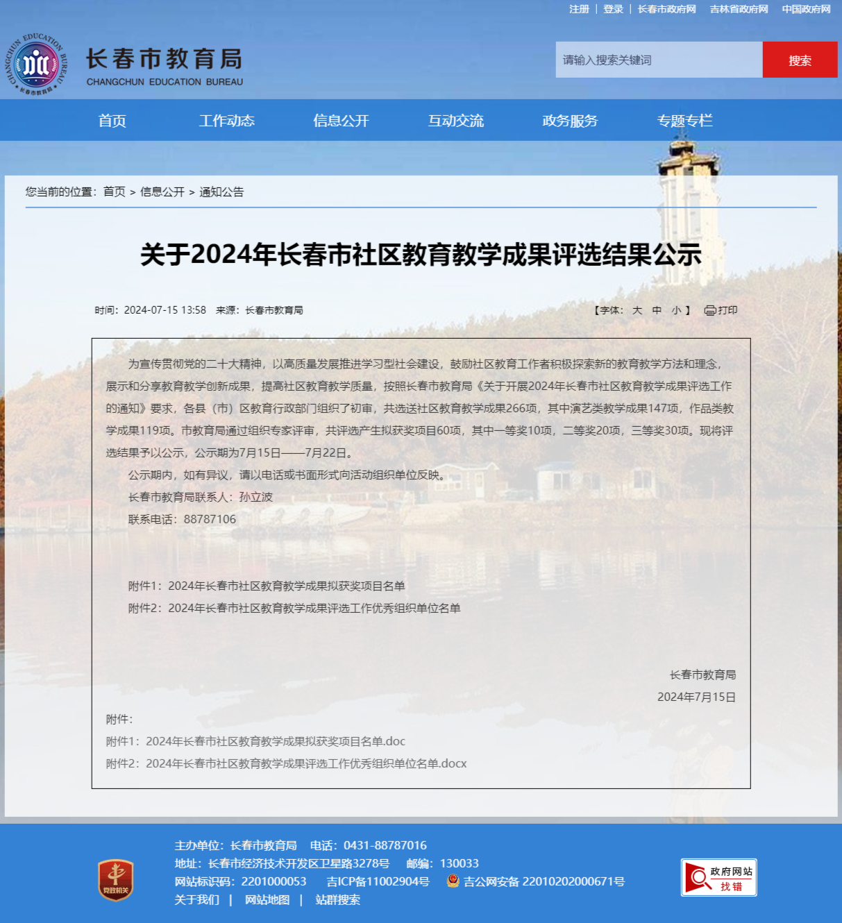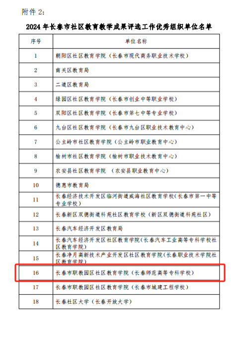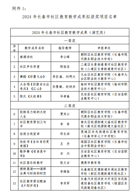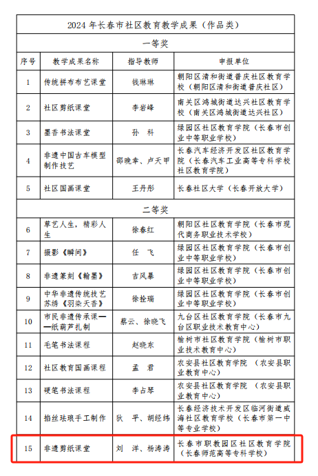 为深入学习宣传贯彻党的二十大精神,以高质量发展推进学习型社会建设,提高社区教育教学质量,长春市教育局开展2024年长春市社区教育教学成果评选活动,共产生60项获奖项目,我校凭借出色的教育成果和在社区教育中所做的突出贡献,在全市众多参评单位中脱颖而出,喜获多项荣誉。