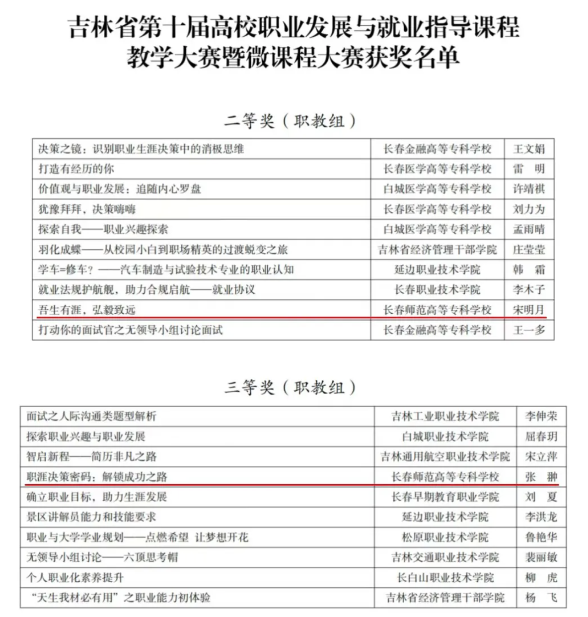 近日,由吉林省教育厅主办,高校毕业生就业指导中心承办的吉林省第十届高校职业发展与就业指导课程教学大赛暨微课程大赛圆满落幕。