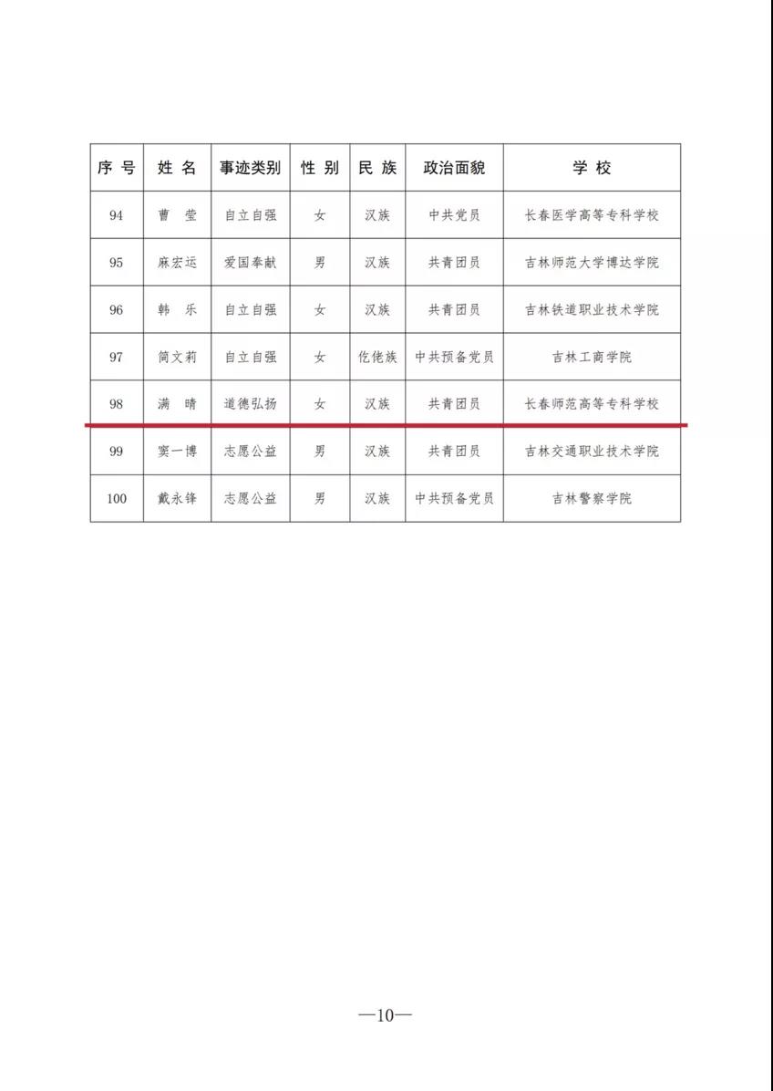 矢志奋斗,自立自强。近日,由共青团吉林省委、吉林省学生联合会主办的2021年吉林省“大学生自强之星”评选结果揭晓。我校学生满晴获评吉林省“大学生自强之星”荣誉称号。