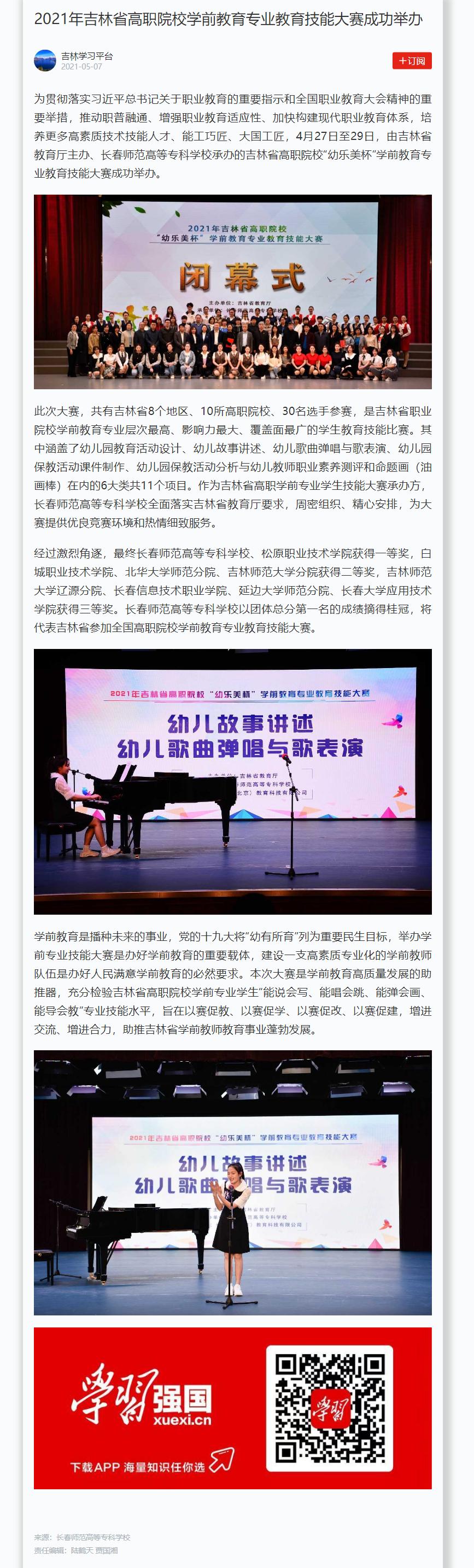 为贯彻落实习近平总书记关于职业教育的重要指示和全国职业教育大会精神的重要举措,推动职普融通、增强职业教育适应性、加快构建现代职业教育体系,培养更多高素质技术技能人才、能工巧匠、大国工匠,4月27日至29日,由吉林省教育厅主办、国产一区二区日本在线承办的吉林省高职院校“幼乐美杯”学前教育专业教育技能大赛成功举办。